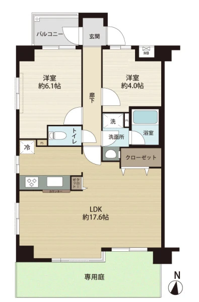 | 間取り | 2LDK | 間取り向き | 南 (角部屋) |