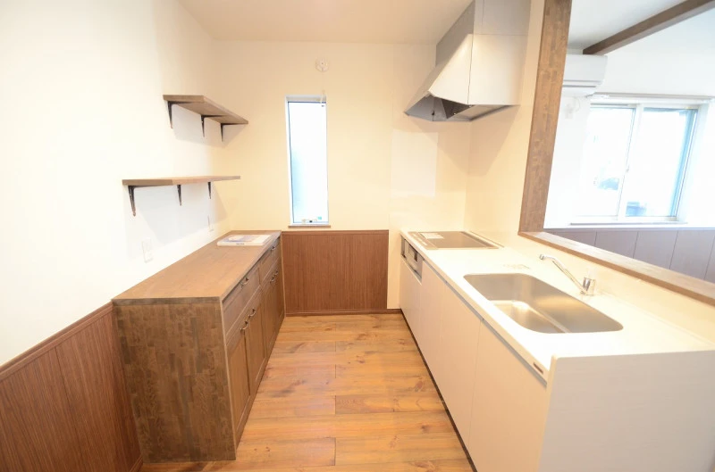 | 設備 | 上水道、都市ガス、下水道、室内洗濯機置場、駐輪場、バス・トイレ別、IHクッキングヒーター、南面バルコニー、システムキッチン、カウンターキッチン、3口以上コンロ、モニタ付インターホン、シャワー、洗面所、洗面台、収納スペース、フローリング | ||