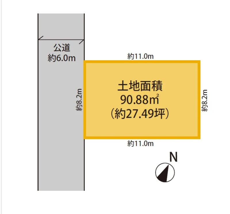 | 土地面積 | 90.88㎡(公簿) | 私道面積 | 私道負担面積無 |